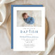 Personalized Photo Religious Cross Blue Boy Baptism Invitation Card.