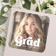 Les autocollants de graduation avec votre photo avec texte blanc superpose "grad" dans une police de style rétro avec l'année ci-dessous.