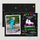 Let's roll with this fun roller skate birthday invitation! Features white roller skates with pink wheels and rainbow laces on chalkboard background with neon stars and confetti. Perfect for skating-themed birthday parties, roller rink celebrations. Retro design with bright colors creates excitement. Great for kids who love roller skating, disco, and retro vibes. Create a rolling good time for your skater's special day!