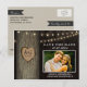 Photo Rustic Carved Oak Tree Save The Date Cards - features a barn wood background, string lights and an oak tree that you can "carve" your wedding date and initials into. The front also features a demo couple photo that you can change to the picture of your choice. The back has a printed burlap looking vector with chalkboard text tags.