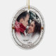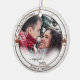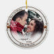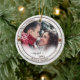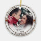 A modern ornament featuring your custom photo framed by a rustic white wood design with metallic lining and elegant stars. Great for a first Christmas together as an engaged couple or just married couple and customizable for other situations.
