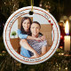 Un ornement moderne avec votre photo personnalisée encadrée par un design rustique en bois blanc avec doublure métallique rouge et étoiles élégantes. Beau pour un premier Noël dans une nouvelle maison et personnalisable pour d'autres situations.