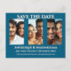 Photo save the date card elegant modern 3 pic blue