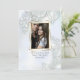 Add your photo in a gold geometric multi faceted frame. Shimmery icy blue luminescent background with luminous rose leaves , eucalyptus leaves, baby's breath and sparkly twinkles. Reverse is a complimentary coordinated colour. This design looks especially nice on the Pearl Shimmer paper choice. Customize text, font style, colour and size. We created this template is to make it easy for you to personalize with your own information. This is part of a complete Wedding Stationery Suite with matching wedding, baby shower and other event stationery. Original Artwork © by WhimsicalArtwork™.