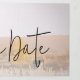 Capture the essence of your love story with our exquisite Custom Photo Wedding Save the Date Card featuring elegant script typography. This timeless and personalized design serves as the perfect prelude to your special day, allowing you to share a glimpse of your joy with loved ones. This save the date features a horizontal photo and script greeting which spans the entire background, outside of this tri-fold card.