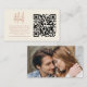Photo Script Terracotta Cream QR Wedding Details. A charming boho inspired earthy coloured small enclosure. Add your QR code to your wedding website making a convenient option for your guests to scan and quickly link to your site to see more information. An informal stylish script for the main heading. Easily personalise the words. Replace the sample photo on the back with your own favourite or delete this if not required.