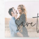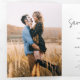 Capturez l'essence de votre histoire d'amour avec notre mariage photo personnalisé exquis Enregistrer la carte de date avec typographie de script élégante. Ce design intemporel et personnalisé est le prélude parfait à votre journée spéciale, vous permettant de partager un aperçu de votre joie avec des êtres chers. Cette sauvegarde de la date comporte une photo horizontale et un message d'accueil de script qui s'étend sur l'arrière - plan entier, en dehors de cette carte à trois plis.
