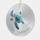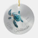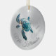 This elegant modern Hawaiian Christmas tree ornament features a shimmering turquoise 3D l turtle on a faux silver background and "Mele Kalikimaka" words in an elegant handwritten script. Customize it with the year on the front side and your photo at the back side.