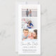 Save the date save wedding announcements featuring a simple design that can be customized with three photos. Personalize your information.