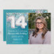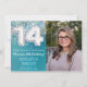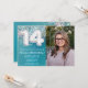 Photo 14th Birthday Invitation Teal and Silver Glitter 14th birthday party invitation for a 14 year old with modern script writing and fun foil balloons.