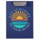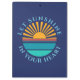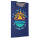 A round photo template on a dark blue background. Click personalize to change the sunset to your own image, and the text to your own, or buy it as is.
