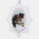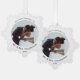 Modern elegant wedding couple photo template with simple text to customize the ornament with the couple's name and year of engagement. Contact me at truullc@gmail.com for matching products or assistance placing orders. Perfect holiday, engagement party, or wedding gift for the newlywed couple.
