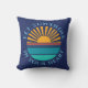 A round photo template on a dark blue background. Click personalize to change the sunset to your own image, and the text to your own, or buy it as is.