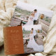 Send your family and friends a special wedding thank you with these custom photo cards. A vertical photo appears on the right half. On the left, the words "Thank You" appear in elegant gold-colored handwriting script typography on a terracotta background over a brief, editable message of thanks to your wedding guests in copperplate font, with your names below. A gold faux glitter border decorates the left edge. The reverse side provides space for a second, horizontal photo.