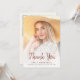 Carte de remerciement moderne de graduation avec une photo verticale personnalisée à l'avant et une photo horizontale à l'arrière. Les mots "Merci" apparaissent dans le script terre cuite, avec votre nom et année de graduation ci-dessous en sans serif font. Personnalisez l'envers avec un message de votre choix en terre cuite sans serif sur un arrière - plan beige, et ajoutez votre signature en écriture manuscrite. Remplacez facilement l'exemple d'images par vos propres photos. Un écran en dégradé blanc permet de s'assurer que le texte à l'avant de la carte pops. Idéal pour obtenir un diplôme d'études secondaires ou collégiales.