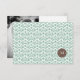 Photo Thank You Notes. A light jade pattern with monogram. Stylish and modern flat card photo thank you notes on invitation stock paper. Endless colour choices and colour combinations. Easy to personalize by replacing the text in the text boxes to the right of this Thank You Note as well as your wedding photo. These pattern thank you note flat cards can be made into thank you notes for those who attended your graduation, birthday, anniversary, holiday and other special events. If you want to change the colour on the front of these thank you cards you may do so by clicking the "customize it" button. There you will find editing tools to the right of the image. To select a different background colour click > "edit" > "background" > pick a colour or if you know your hex colour code enter it in the advanced colour section (text box) in the colour chart and be sure to click "done" when prompted or the colour will not stay. The brown circle under the monogram is an image and if you need a different colour simply contact us for a colour change. You may change the colour of the text as well in the "customize it" section. Click on "Customize it" if you haven't already and click on the text you want to change the colour of. Once you have done that you will notice a little box which will be the colour of the text already selected. Click on that colour box and a colour chart will open for you to select a different colour for the text selected. Be sure to click "done" when prompted. When you have completed your custom photo thank you note cards simply select the number of thank you notes you will need and add to cart to check out. Thank you for shopping at Pine and Berry.