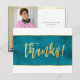 A simple "thanks" in faux gold foil, handlettered script type with photo and your message on the back - a simply perfect THANK YOU for your wedding, or any other event