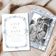 Announce your special day in style with this Victorian Floral Dusty Blue Photo French Wedding Save the Date. Featuring vintage-inspired florals, soft dusty blue tones, and space for your favourite photo, this elegant design sets the tone for a romantic and timeless celebration. Perfect for French-inspired, garden, or classic weddings, it combines sophistication with personalization. Customize with your names, wedding date, and location to create a keepsake guests will adore.