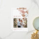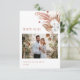 This elegant wedding thank you card in modern colors features dusty rose and blue flowers on a tropical leaves and a custom photo on a white background. Matching wedding invitation available.