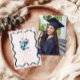 The design includes elegant serif and script fonts and a wavy frame layout for a unique, standout look. Ideal for showcasing the tools of the trade and the hardworking student behind them, this invitation brings a fresh and artistic twist to a medical milestone.