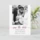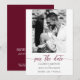 Burgundy wedding save the date cards feature your photo and your details in chic lettering on the front and more wedding details on the back. Be sure to double-check your order before adding it to your cart as what you see on the screen is what will be printed. The Live Design Service can help you with your design layout if needed. MORE designs in our store.