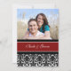 Wedding invitation custom photo cards in elegant red, black and white floral damask pattern. Customize these invitations with your wedding details and your own photo. Available in matching products for all of your wedding needs.