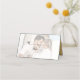 Elegant folded wedding place card featuring your couple photo printed beneath a soft blue overlay on the front, and a clean white background with editable guest name and table number on the back. Perfect for modern, beach, or destination weddings, this personalized photo seating card adds a romantic and cohesive touch to your wedding reception decor.