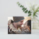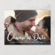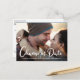 Even though circumstances require you to postpone your wedding date, show your guests your love goes on with your favourite engagement photograph on this wedding change of date announcement postcard. "Change of Date" is written in large contemporary white script across the bottom of your photo, and underneath you can personalize your names and whether your wedding has been postponed, venue changed, etc. On the reverse side, you can further personalize your message in more detail and add your new wedding date and venue.