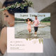 A Photo Wedding Save The Date Boho Announcement Card designed with your favourite couple's photo. The front text includes: Save The Date and Bride and Groom's First Names. The reverse side text includes: the Bride and Groom's full names, Wedding Date, and additional details; with soft blush pink floral accents. To personalize, simply insert your image into our template, replacing the sample photo. Click FILL to cover the space. The text remains on top of the photo. Next insert your text into the template, replacing the sample. It's fast and easy. Be sure to view the entire Blush Pink and Green, Elegant BoHo Style Wedding Collection.