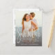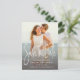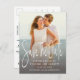 Elegant and chic save the date postcard features your photograph on the front framed in a large white text Save the Date, which is written in a beautiful script calligraphy. Your names, wedding date and location follow. The back gives more information on your wedding. Very easy to personalize and customize for your special message.