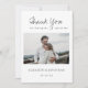 This simply stylish wedding thank you card features words of thanks above your favourite photo and your first names and date below it. We've chosen a warm, modern script for 'Thank You' and added 'for sharing our special day' underneath, with that line separated by the the loop of the 'Y', enhancing its relaxed, intimate charm. This message makes this card particularly well suited to expressing your thanks specifically to those who were able to attend your wedding party. You can edit it to express a more general message of thanks, but the nature of the design might limit your options as far as appearance goes, depending on how long your desired message is and how the words can be arranged with the 'Thank You' above them. The text is a very dark grey that is in fact mostly black. You can of course change this to any colour that suits your style and your day, be it true black or another hue. You can also choose a different font for any of the text. You might even want to change the thank you wording or other text to something completely different. We've chosen a clear background, which lets the colour of the card simply serve as the base tone, but you can choose a colour instead. Similarly, on the back we've used the same very dark grey tone on a transparent base, and we've put some placeholder text there for you to delete and replace with your own message, with or without your names, if you want to sign by hand when you get the cards. But you might also simply choose to delete our placeholder text and leave the back entirely blank so that you can write a message by hand on each card and sign your names. In any case please do remember that there's placeholder text on the back as well and to delete all of our sample/placeholder text on both sides of the card! Use the intuitive design tools, your favourite photo and your inspiration to make this chic modern wedding thank you card uniquely yours! We also offer this design on a square card, as well as a selection of other modern minimalist designs, so please check our store for more ideas!