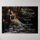 The white calligraphy, a symbol of purity and grace, enhances the warmth of the welcome, inviting guests to share in the love that defines this special day. As you approach, let the image of the couple and the elegant script be your guide into a celebration where every detail speaks of timeless romance.