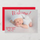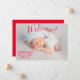 Welcome! Sweet gender neutral red baby birth announcement to announce your wonderful news.