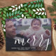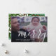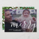 Green botanical leaves and berry pattern on back. Use one picture with the subject preferably in the middle or towards the top. A darker photo works better with this white type overlay. Make a unique and trendy Merry Christmas greeting with a trendy and joyful pattern on the back.