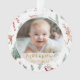 Cute Baby's First Christmas holiday photo ornament features a rustic pattern in classic, traditional Christmas colours of red, green. Edit in a minute, upload your favourite photo and enter your data. Perfect for your new little one!