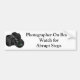 Pour le photographe qui se promène en prenant des photos. Un appareil photo noir sur la gauche avec toutes les lettres noires. "Photographe À Bord, Attention Aux Arrêts Abrupts". Arrière - plan est blanc pour donner une vision claire à quiconque vous suit.
