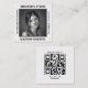 Modern and chic design for photographer business card. The background is white smoke which makes the card simple, stylish and trendy. The design contains black and white customizable photo wich recalls vintage designs. The QR code and social media to personalize on the back add a smart and sophisticated touch to the design and allows your customers to scan and connect with you in social media.