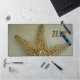 Ce tapis de bureau photographique côtier en bord de mer a une belle étoile de mer naturelle turquoise sur un arrière - plan couleur sable neutre avec Initials pour personnaliser. Cette image est une photographie naturelle originale de JLW_PHOTOGRAPHY.