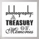 This stylish graphic design with "Photographer: A Treasury of Memories" with stylized image of a camera is perfect for the photographer looking for something unique for their wardrobe