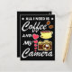 The design has quote "All I Need is Coffee and My Camera" is the perfect gift for the person who love photography and enjoy coffee. It makes an ideal gift option for a birthday and Perfect present.