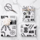 B&W pattern design featuring photography accessories illustrations including cameras, films and tripods.