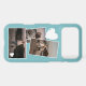 A beautifully designed light teal blue green cellphone case with space to personalize it with three pictures of your choice. Adorned with cute hearts, this phone case makes a perfect Mother's Day gift for mom.
