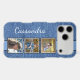 Classy chic and classic faux blue jeans denim fabric textile design. With room to customize or personalize with photos, a name, monograms, or initials of your choice. Beautiful, modern, and cool cover for the trend-savvy and art-loving hip trendsetter, artsy motif lover who wants to protect their phone from dust and dirt, wear and tear. This design is available in Apple iPhone 6, 7, 8, 10 or X, XR, XS, 11, 12, 13 Mini, 14, 15 Plus, and Pro Max cellphone cases. Show off your style, look fashionable trendy, and feel stylish with a unique design on a mobile device accessory of your choice.