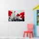 J'avais l'intention avec cette image de faire ressortir la vitalité du rouge dans ces coquelicots de Flandre, et donc certains pétales sont dans leur couleur originale avec l'arrière - plan en mono. La lueur du rouge est particulièrement accentuée dans le bourgeon émergent. Le pavot rouge est délicat et fragile et a une courte vie en fleurs. Chaque année en novembre au Royaume-Uni, on peut le voir partout sur les revers des gens quand il arrive en lui-même comme le symbole du souvenir des morts de la guerre. Avec tant de guerres actuelles, c'est particulièrement poignant. Les arrière - plans noirs et blancs ajoutent une sombité pour faire écho à cela, mais le rouge vif engendre encore espoir et vie. Les pavots viennent de mon jardin à Glasgow, Ecosse, Royaume-Uni.