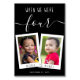 A modern, more original way to personalize your table numbers with childhood photos of bride and groom at that number age (the default is four). The placeholder photos of a little girl (the bride) and a little boy (the groom) have retro white borders, overlapping, in the lower half. The names of the bride and groom are written on the photos' lower white borders. In the upper part, there is the message "when we were [age]" with the age written in a modern script. In the lower part, under the two photos, there is the date. The background has a modern shade of brown, most text is white (except the names on the photos, that are also brown).