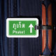 Funny Phuket, Thailand Ahead Bilingual Thai Highway Traffic Sign written in Thai and English Language Scripts.