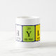 Phylis spelled out as P H Y Li S (Phosphorus Hydrogen Yttrium Lithium Sulfur) on a mug for the scientist in you.