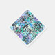 A unique geeky design depicting physics equations in shades of blue, turquoise and purple.