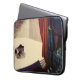 This laptop sleeve looks exactly as it does in picture. I actually thought is was too small until I put my laptop in it. It's a bit snug, but it fits. Figure it will stretch a bit, hopefully seams hold. Them seem good for now. I didn't have any personalization done, looks great as is.