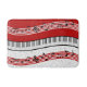 A fun music themed design for the keyboard and piano lover with curved piano keyboard and a music score design in red white and black with light grey music notes background